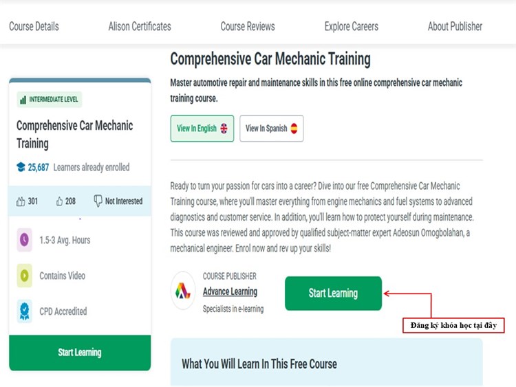 [Alison] Giới thiệu khóa học: “Comprehensive Car Mechanic Training – Đào tạo toàn diện kỹ thuật sửa chữa ô tô”