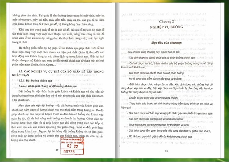 Với nội dung được trình bày khoa học, dễ hiểu và bám sát thực tiễn, giáo trình không chỉ là nguồn tài liệu học tập hữu ích cho sinh viên mà còn là cẩm nang quan trọng dành cho những ai đang làm việc hoặc mong muốn theo đuổi sự nghiệp trong ngành khách sạn.